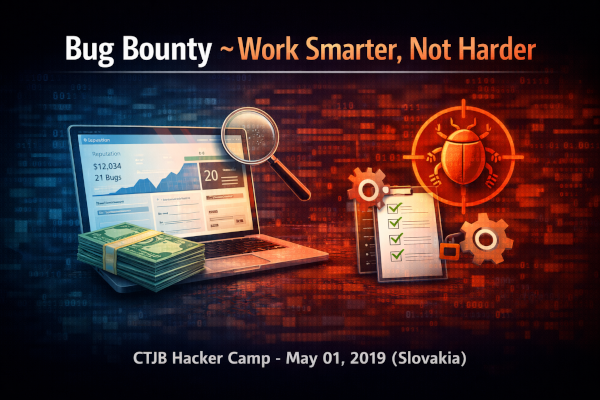 1 May 2019 | Slovakia - Official scheduleSlides: https://vavkamil.cz/assets/slides/2019-05-01-bug-bounty-work-smarter.pdf